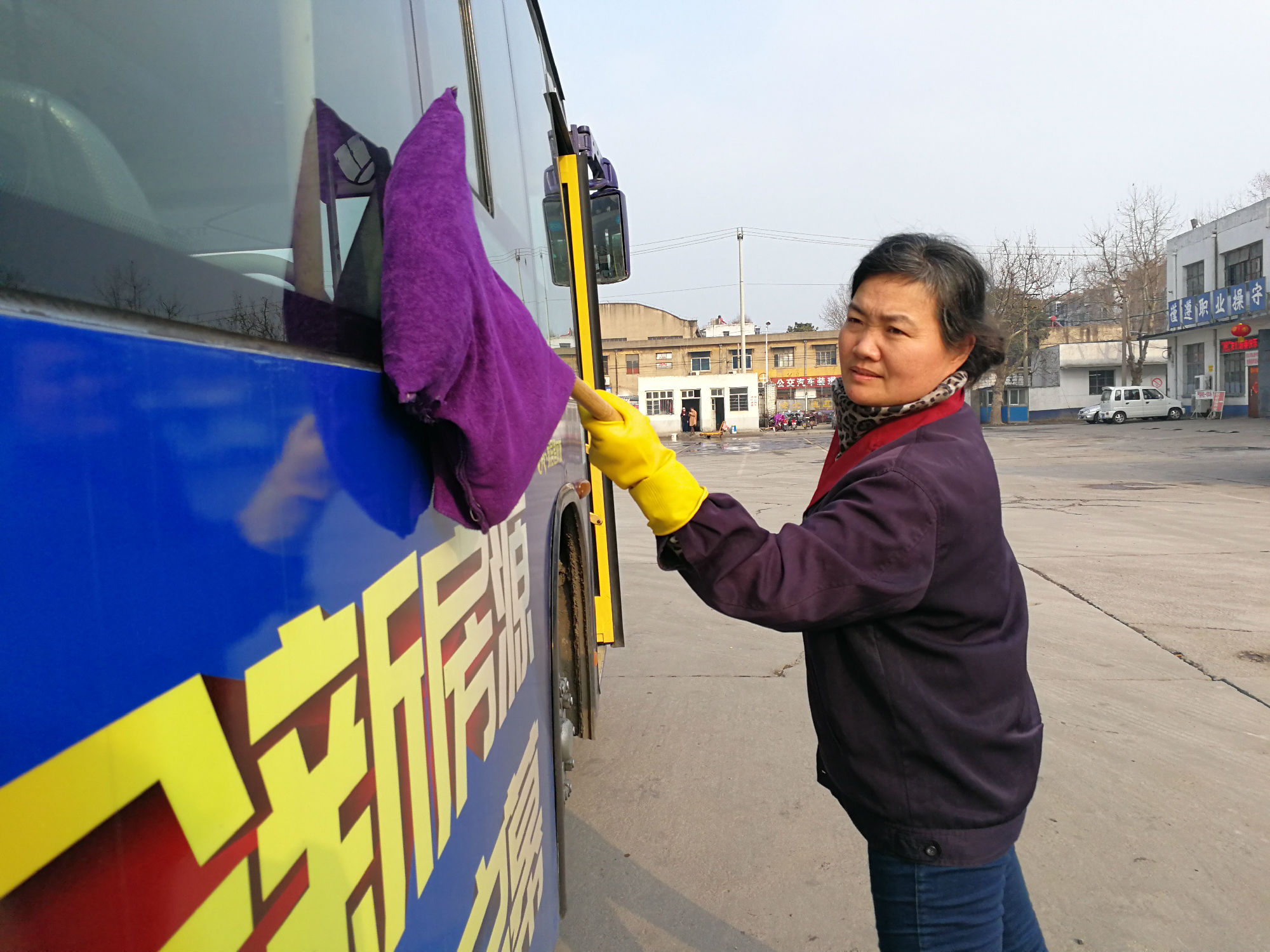 清晨5點(diǎn),74路保潔員韓黎明已經(jīng)來(lái)到韓山車(chē)場(chǎng),開(kāi)始保潔車(chē)輛。由于氣溫較低,車(chē)場(chǎng)內(nèi)的水龍頭凍壞了,無(wú)法正常使用,她只好到遠(yuǎn)一點(diǎn)的地方,將水一桶桶的運(yùn)來(lái),開(kāi)始細(xì)心地擦拭玻璃,車(chē)輛外圍,車(chē)內(nèi)座椅、內(nèi)圍板....不放過(guò)一處角落。冬天的水冰涼刺骨,清洗抹布的手凍得通紅,搓搓手、跺跺腳,她又賣(mài)力的干了起來(lái)。車(chē)窗玻璃上厚厚的霜十分難擦,加上道路上經(jīng)常遇到灑水車(chē),跑完一圈回來(lái)車(chē)身又臟了,增加了車(chē)輛保潔難度。韓黎明不怕辛苦,任勞任怨,只要有臟的地方,她就再次清潔,確保出場(chǎng)的每輛車(chē)都干干凈凈。期間,她的衣服多次被汗水浸透,晾晾汗,又凍得發(fā)抖,韓黎明沒(méi)有抱怨,仍然堅(jiān)守完成自己的工作。
