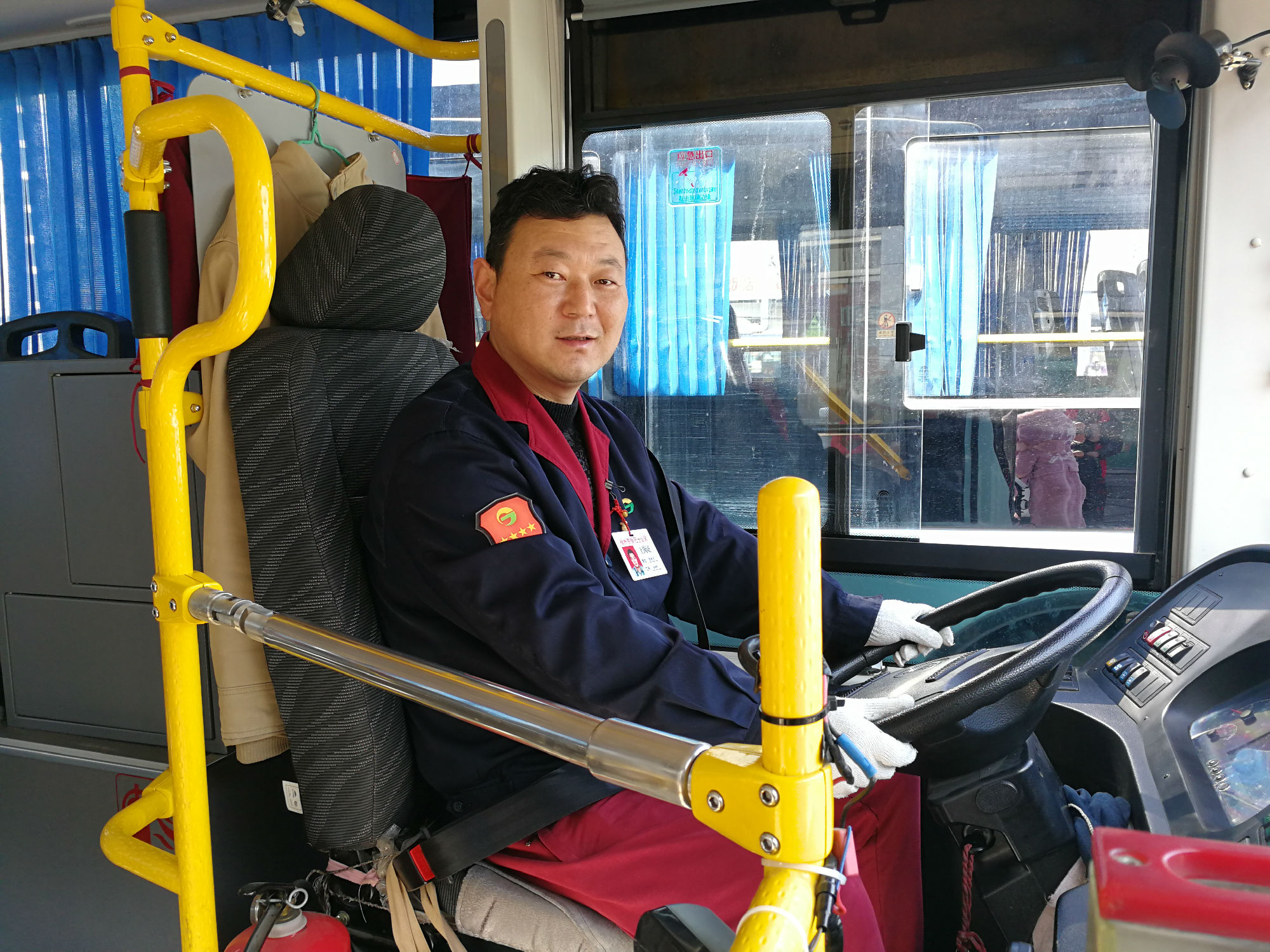 汽車(chē)南站,人流擁擠,專(zhuān)一線路的客流明顯增多,拎著大包小行李回家過(guò)年的外地乘客比例也明顯增加?!按蠹易⒁獍踩?,不要擁擠,請(qǐng)排隊(duì)乘車(chē)”。專(zhuān)一路四星級(jí)駕駛員王旭微笑著引導(dǎo)乘客乘車(chē),在他的耐心疏導(dǎo)下,乘客們排隊(duì)上車(chē)、秩序井然?!败?chē)輛起步,請(qǐng)大家拉好扶手,保管好自己的行李物品”。車(chē)輛行駛至農(nóng)副產(chǎn)品市場(chǎng),一位70多歲的大媽拉著手推車(chē)準(zhǔn)備上車(chē),王旭立即幫大媽把手推車(chē)搬到車(chē)上放好并鼓勵(lì)車(chē)內(nèi)乘客為老人讓座,安排好老人后,他才平穩(wěn)起步行車(chē)?!靶熘菡荆ㄋ{(lán)天)到了,請(qǐng)到火車(chē)站、汽車(chē)總站的乘客下車(chē),拿好您的行李物品,祝您一路平安”!王旭細(xì)心地提醒乘客?!皫煾?,火車(chē)站怎么走?”一位外地乘客詢問(wèn),“下了車(chē),您往前走,過(guò)兩個(gè)紅綠燈,您就看到火車(chē)站了?!蓖跣衲托牡亟獯?。行駛至終點(diǎn)站,王旭走到拿著重物的大媽身邊,微笑著說(shuō):“大媽?zhuān)襾?lái)幫您拿下去吧,您慢點(diǎn)下車(chē)”,大媽十分感激,從包里拿出一個(gè)蘋(píng)果塞給王旭,說(shuō)道:“小伙子,你人真好,服務(wù)態(tài)度熱情,你一定要拿著這個(gè)蘋(píng)果,希望你新的一年平平安安?!蓖跣裥睦锱?,在他看來(lái),他只是做了自己該做的事情,卻收獲了乘客的溫暖祝福。