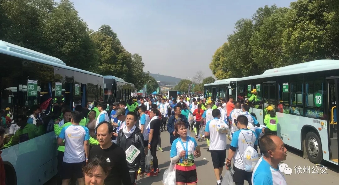 為做好后勤保障工作,大賽當(dāng)天,公司安排了238臺公交車分布在湖北路體育中心、新城區(qū)奧體中心、中國礦業(yè)大學(xué)南湖校區(qū)三個比賽點,為“徐馬”護(hù)航。其中, 70臺車負(fù)責(zé)運動員接駁,40臺車負(fù)責(zé)運動員存放衣服,10臺車負(fù)責(zé)運動員比賽中途出現(xiàn)突發(fā)情況時進(jìn)行收容,其余100余輛車負(fù)責(zé)接送志愿者。