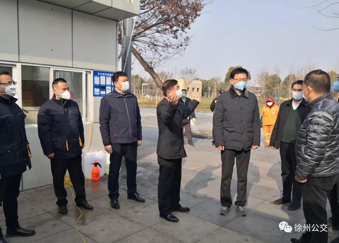 目前,新型冠狀病毒的肺炎疫情已進入高峰期,疫情防控依然是當前最重要的工作。2月4日上午,徐州市副市長趙立群,市交通運輸局黨委書記、局長蔡前鋒等領導來到高鐵上客站,對10路接駁車疫情防控工作進行了檢查指導,公司總經(jīng)理馮陸陸陪同檢查。
